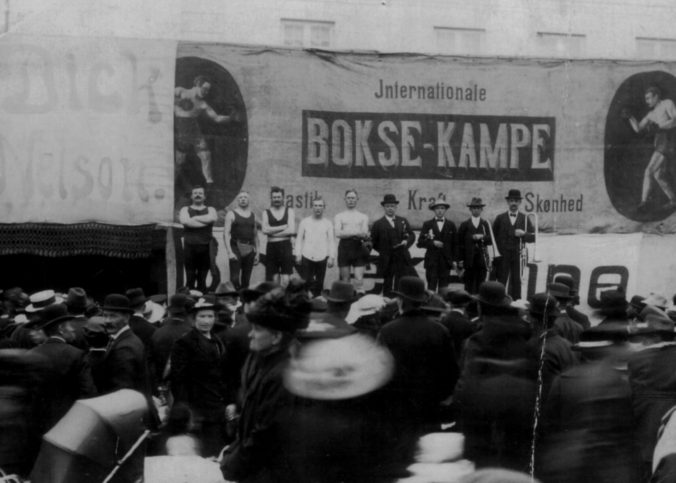 Det var efter alt at dømme boksepionéren Jim Smith, der indførte markedsboksning herhjemme. Fænomenet var kraftigt inspireret af tilsvarende brydeforestillinger, hvor det på forhånd var aftalt hvem der skulle smide hvem. Menageriet turnerede på sæsonens markedspladser rundt om i provinsen…