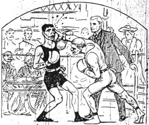 Denne, Danmarks første professionelle boksematch, blev arrangeret under ganske primitive forhold. Selve bokseringen bestod af fire stole, hvorom der blev spændt sejlgarn. Vægten gik man heller ikke så meget op i; P. L. Jacobsen vejede omtrent 5 kg mere end Jim, som til gengæld var 12 år yngre end Jacobsen, der på dette tidspunkt var over de fyrre. Jim havde medbragt to par handsker, som var stoppet ud med krølhår, men Jacobsen insisterede på at benytte sine egne handsker, der var forede med tang. Hvad selve kampen angår, varede den 4 omgange á 2 minutter, hvorefter Jacobsen måtte give op for den yngre rutinerede profbokser. Jacobsen tog efterfølgende selv nogle lektioner hos Jim Smith.
