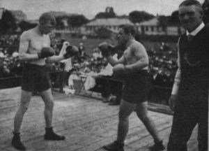 Der var halvt fyldt til søndagens boksestævne. Waldemar Holberg og Holger Hansen lagde for i en 6 omganges kamp. Waldemar pressede på for at knockoute Holger, men uden held og kampen blev erklæret for uafgjort.