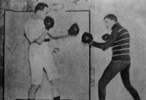 Aaron Brown, the Dixie Kid, former welterweight title holder, and Dick Nelson fought a rather dull ten round mill last week September the 19th before a small crowd at the Manhattan AC. Nelson was by far the busier fighter and several times forced his dusky opponent to the corners with savage rushes. Brown was the heavier puncher by many lengths but either could not or simply would not exert himself to target Nelson’s jaw. In the fifth round Nelson, with a half push, sent Dixie to the mat but could not follow up his advantage. In the last round, Mr. Brown seemed to wake from his slumber and in what appeared to be a play to the half empty house, he roused up his taller opponent with four or five different rushes. Although, bleeding slightly from his right optic and showing a bit of wear, Nelson finished the bout on his feet. No official decision was rendered, although in the estimation of this reporter, Nelson had the advantage.